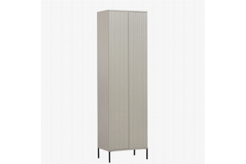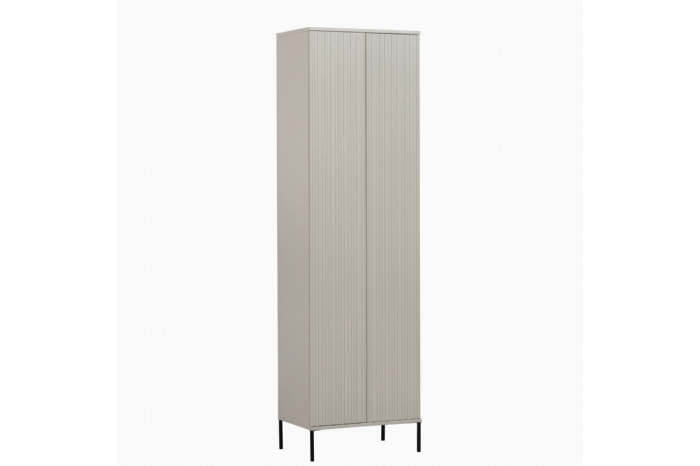 Wandkast New Gravure van interieurlabel WOOOD is opvallend hoog en heeft een modern design met reliëf accent op de deuren. De kast is gemaakt van grenenhout afgewerkt in kleur Dust. De nerven en knoesten zijn nog steeds zichtbaar en deze natuurlijke kenmerken geven karakter aan het meubel. Het lineaire patroon geeft de slanke wandkast een elegante uitstraling. Het zwart metalen onderstel maakt het geheel luchtig en de greige kleur zorgt voor de elegante finishing touch bij wandkast New Gravure.Indeling:Wandkast New Gravure heeft 2 deuren met daarachter 3 planken die je op verschillende hoogten kunt plaatsen. Er is ook een lade met soft-close systeem waardoor deze zacht en soepel sluit. De greeploze deuren zijn voorzien van een push-to-open systeem. Het interieur van de kast is van beige spaanplaat.Levering & montage:De New Gravure wandkast wordt als bouwpakket geleverd en moet nog gemonteerd worden. Volg de duidelijke montage-instructie voor het beste resultaat. De kast wordt liggend gemonteerd, Houd rekening met extra hoogte voor wanneer je de kast omhoog gaat kantelen. Plaats viltglijders onder de poten voor het beschermen van harde vloeren. Zorg dat de omvalbeveiliging goed is gemonteerd om ongelukken te voorkomen.