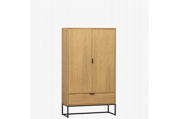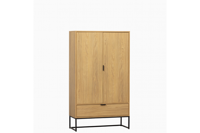 Wandkast Silas van woonmerk WOOOD heeft een strakke, moderne uitstraling en biedt een goede basis voor een interieur. Bovendien is er ook lekker veel plek om je spullen in op te bergen. Het opbergmeubel heeft een afwerking met een melamine met eiken look, een sterk en krasvast materiaal. Het onderstel is een hoog en luchtig frame, gemaakt van zwart metaal. Door de hoogte van 149 cm, is het leuk om de kast te decoreren met mooie vazen of een lamp.Indeling:De wandkast heeft 2 grote deuren, daarachter vind je 2 planken. Elke plank heeft een draaggewicht van 15 kg. De grote lade onderin is 31 cm diep en 13 cm hoog. De deuren en lade van de kast hebben zwart metalen handgrepen.Levering & montage:Wandkast Silas wordt als bouwpakket geleverd en moet nog gemonteerd worden. Deze kast wordt liggend gemonteerd. Het monteren doe je met 2 personen. Zorg voor het juiste gereedschap en volg vervolgens stap voor stap de gebruiksaanwijzing.