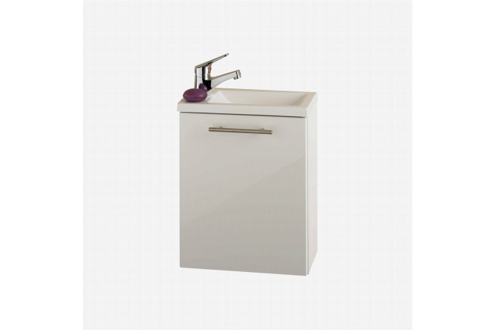 Deze praktische wastafel kun je gemakkelijk in de kleinere ruimte kwijt. Met zijn afmetingen van 40 cm breed, 50,5 cm hoog en 22 cm diep ook goed te plaatsen in een toilet. Het deurtje kan zowel linksom- als rechtsom gemonteerd worden. Het meubel is afgewerkt met hoogglans MDF-fronten en door zijn melamine afwerking is deze kast gemakkelijk schoon te houden en langer beschermd tegen stof, vuil en krassen. De wastafelkast wordt geleverd exclusief kraan, toevoerleidingen naar de kraan, afvoerplug en zwanenhals.
