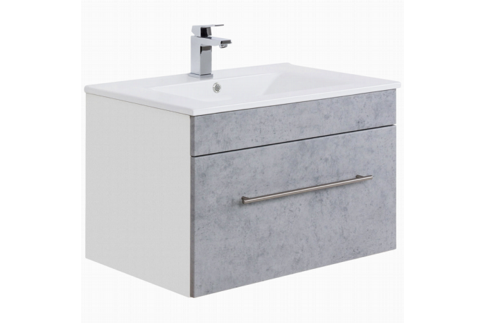 Deze wastafelkast heeft een breedte van 75cm, een hoogte 48cm en een diepte van 45,5cm. De wasbak met overloop heeft een breedte van 75,5cm en een diepte van 46,3cm. Onder de wastafel bevindt zich een ruime lade met soft-close systeem.De wastafelkast wordt geleverd exclusief kraan, toevoerleidingen naar de kraan, afvoerplug en zwanenhals. De wastafelkast is verkrijgbaar in 3 afmetingen Small, Medium en Large en kan worden uitgevoerd in hoogglans wit, zwart, antraciet, beton-look en eiken.