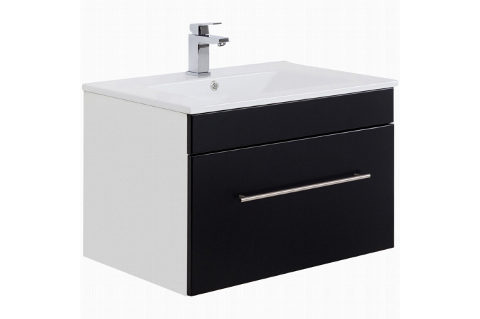 Deze wastafelkast heeft een breedte van 59cm, een hoogte 48cm en een diepte van 45,5cm. De wasbak met overloop heeft een breedte van 61,5cm en een diepte van 46,5cm. Onder de wastafel bevindt zich een ruime lade met soft-close systeem.De wastafelkast wordt geleverd exclusief kraan, toevoerleidingen naar de kraan, afvoerplug en zwanenhals. De wastafelkast is verkrijgbaar in 3 afmetingen Small, Medium en Large en kan worden uitgevoerd in hoogglans wit, zwart, antraciet, beton-look en eiken.