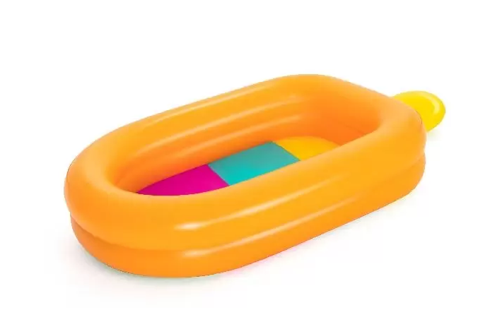 Bestway Familiezwembad IJsje 302cmDeze zomer kun je samen met je kids heerlijk afkoelen in dit super leuke zwembad! Hij heeft de vorm van een waterijsje, waarvan de rand oranje van kleur is en de bodem uit 4 vrolijke kleuren bestaat. Het 'ijslolliestokje' aan de zijkant van het zwembadje is geschikt om op te zitten. De extra brede zijwand bestaat uit 2 gelijke ringen. Dit kinderzwembad heeft een afmeting van 203x170x51cm (LxBxH) en een maximale watercapaciteit van 681 liter. Geschikt voor kinderen vanaf 6 jaar. Deze set wordt geleverd inclusief reparatiesetje.Specificaties Hoogte: 51cm Lengte: 302cm Breedte: 170cm Vorm: IJsje Kleur: Oranje, groen, roze, turquoise en geel Materiaal: Vinyl Inhoud: 681 liter Inclusief: Aftapkraan en reparatieset