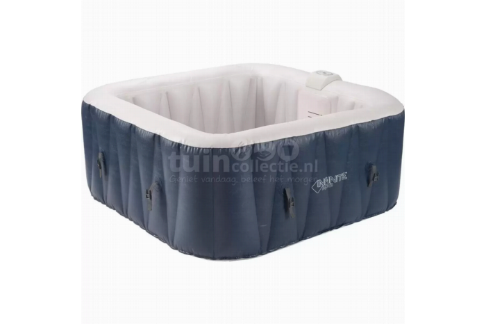 Champion Infinite Spa 600L - 4 persoonsWat is er nu lekkerder dan bubbelen in een jacuzzi of bubbelbad tijdens een fijne zomeravond in de tuin? Deze Champion Infinite Spa is daar perfect voor! De Infinite Spa is een opblaas jacuzzi met een inhoud van 600 liter en biedt plek voor 4 personen. Daarnaast is hij blauw met parelwit van kleur en heeft een afmeting van 154x154x65cm. Deze jacuzzi is voorzien van 120 air-jets en een geïntegreerd en geruisloos filter- en verwarmingssysteem. De watertemperatuur is instelbaar van 20 tot 40°C, waardoor je altijd een fijne temperatuur hebt. Montage en onderhoudEen groot voordeel van deze Infinite Spa is dat hij binnen 5 minuten op te blazen is. Leg allereerst het bijgeleverde, beschermende grondzeil neer, zet het bad eenvoudig zonder gereedschap in elkaar en laat het bad opblazen. Ook het instellen gaat erg gemakkelijk middels het digitale bedieningspaneel en geïntegreerde motorblok. Na gebruik kun je met de bijgeleverde afdekhoes het water op temperatuur houden en beschermen tegen vuil. Na het zomerseizoen is de Infinite Spa eenvoudig leeg te laten en compact op te bergen. Dat is het gemak van een opblaasbare jacuzzi!Voordelen Infinite Spa Opblaasbaar Inclusief isolerende beschermhoes Geschikt voor 4 personen Snelle montage, zonder gereedschapSpecificaties Inhoud: 600 Liter Hoogte: 65cm Lengte: 154cm Breedte: 154cm Kleur: Blauw en parelwit Materiaal: PVC Vorm: Vierkant Geschikt voor: 4 personen Aantal air-jets: 120 Vermogen air-jets: 600W Vermogen verwarming: 1800W Inclusief: 2 filterpatronen, geïsoleerde afdekhoes, thermisch grondzeil en opbergzak
