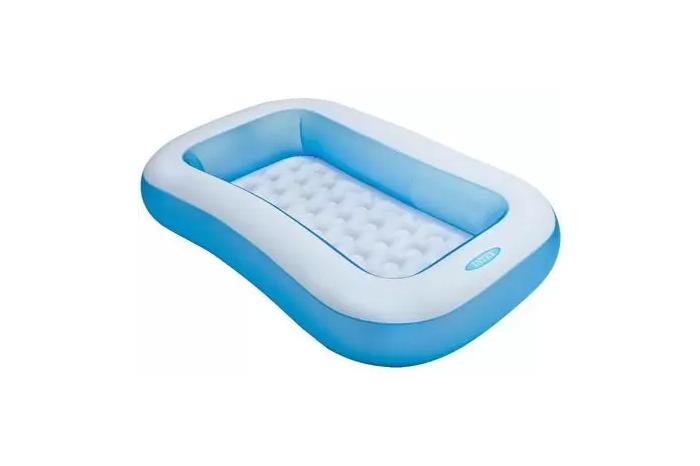Intex BabyzwembadRechthoekig zwembad in de kleuren blauw en wit met een opblaasbare bodem waardoor uw kinderen comfortabel kunnen zitten. Perfect voor afkoelen, badderen en spelen op warme zomerdagen. Het kinderzwembad is gemaakt van stevige kwaliteit vinyl. Dit zwembadje is ook uitermate geschikt voor op het balkon of terras. Geschikt voor kinderen vanaf 2 jaar. Inclusief reparatiemateriaal.Specificaties- Hoogte: 28cm- Lengte: 166cm- Breedte: 100cm- Inhoud: 102 LiterLet op! Laat een kind nooit zonder toezicht. Gevaar voor verdrinking. Alleen onder toezicht van volwassenen gebruiken.