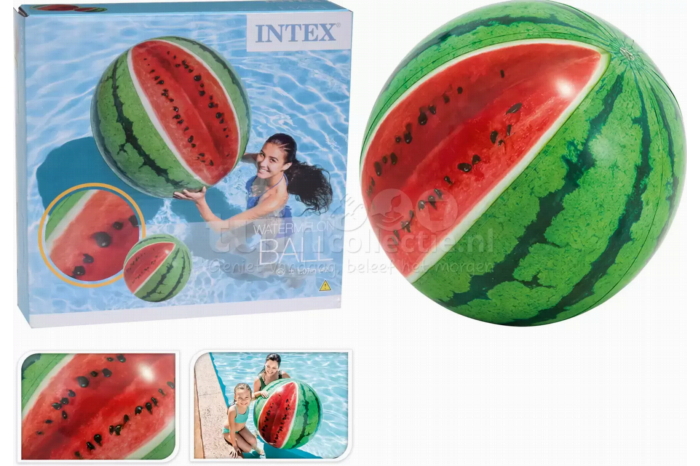 Intex Strandbal Watermeloen Ø107cmWarm weer? Tijd om naar het zwembad of strand te gaan en te genieten van de zon. Deze watermeloen strandbal heeft een diameter van 107cm. Overgooien en watervolleybal is met deze grote strandbal extra leuk! Als opengesneden watermeloen lijkt deze strandbal net echt. Geschikt voor kinderen vanaf 3 jaar. Deze opblaasbare strandbal wordt geleverd met een reparatieset.Specificaties Diameter: 107cm Kleur: Groen, rood, zwart Materiaal: Vinyl Inclusief: Reparatieset
