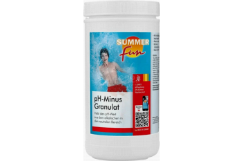 Summer Fun pH-Minus Granulaat 1,5kgMet de Summer Fun pH-Minus granulaat verlaag je de pH-waarde van je zwembadwater eenvoudig. De ideale zuurtegraad voor het water in het zwembad of jacuzzi ligt tussen 7,0 en 7,6. Een te hoge of lage pH-waarde in zwembadwater kan zorgen voor irritaties aan de ogen. Daarnaast kan het chloorverbruik verminderd worden wanneer de pH-waarde op orde is. Meng dit product nooit met andere producten/chemicaliën. De verpakking heeft een inhoud van 1,5kg. Specificaties Inhoud: 1 liter Lees voor gebruik altijd de handleiding Exclusief pH test strips