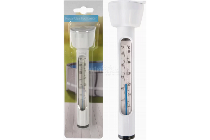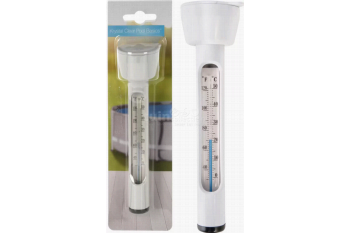 Thermometer ZwembadDe zwembadtemperatuur meten? Laat deze zwembad thermometer in het water plonzen en hij gaat de watertemperatuur meten. Deze drijvende thermometer is gemakkelijk Celsius en Fahrenheit af te lezen en kan tegen een stootje door de schokvaste plasticconstructie. Houd je hem liever op één plek in het water? Met de opening aan de bovenkant van de zwembad thermometer hang je hem gemakkelijk op aan een koord.Specificaties Lengte: 17,5cm Breedte: 5cm Kleur: Wit Materiaal: Kunststof